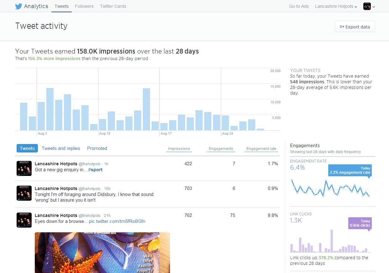 Twitter has always lagged behind Facebook in terms of the statistical data it produces on your followers/fans…until now! Twitter has just launched Twitter analytics. Why is this of use to you? With this enabled on your account you’ll be able to see: