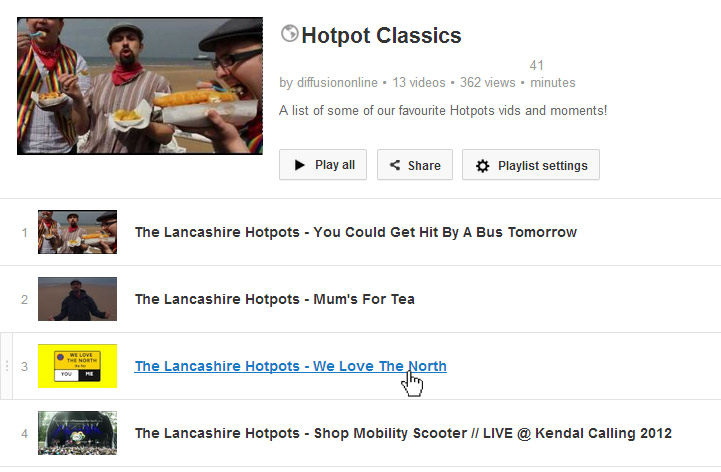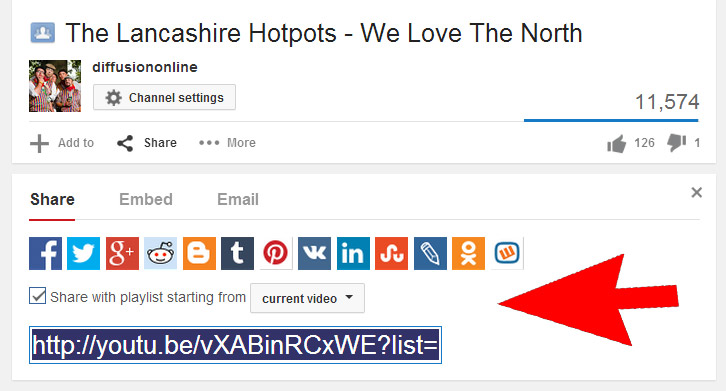 2) From within that playlist window, click the URL to view the video you want to post (in this case it’s the video ‘We Love The North’. It will open as any other YouTube page would.